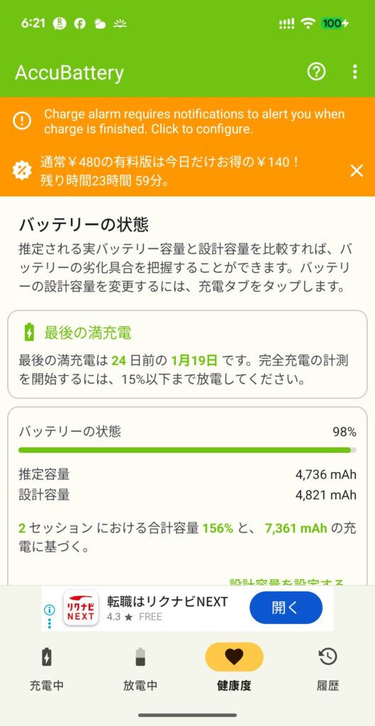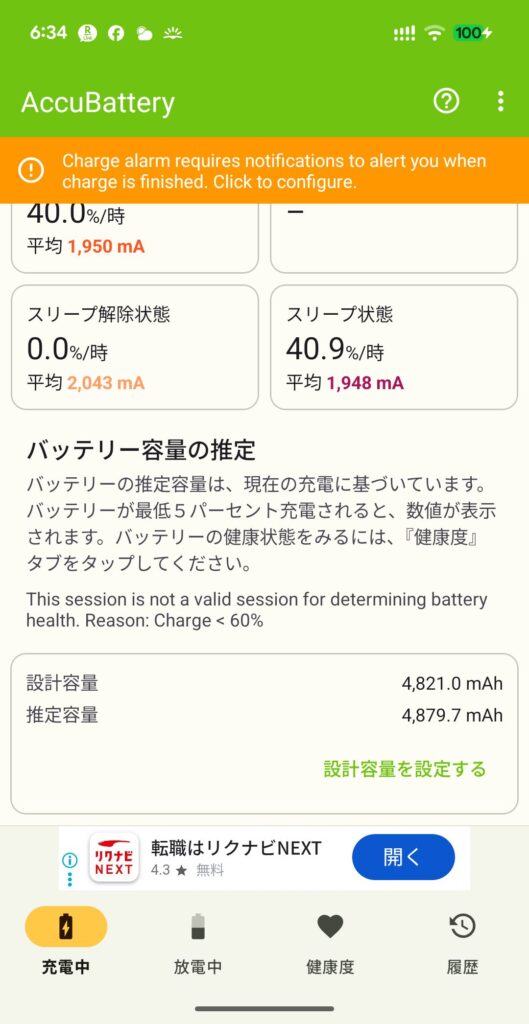整備済み品や中古品を買う場合に気になるバッテリーですがこちらも特に問題なく、まだ長期AccuBatteryアプリで状態確認中ですが容量98%程度は保たれているようで、実際の使用においても特に問題はないです。